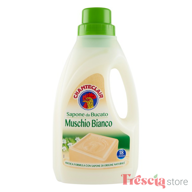 Chanteclair Sapone da Bucato Muschio Bianco este un detergent lichid delicat, ideal pentru spălarea manuală sau automată a tuturor tipurilor de țesături, inclusiv a celor fine și colorate. Formula sa tradițională, îmbogățită cu săpun natural și parfum de mosc alb, curăță eficient rufele, respectând fibrele și culorile. Este testat dermatologic și potrivit pentru utilizarea zilnică.